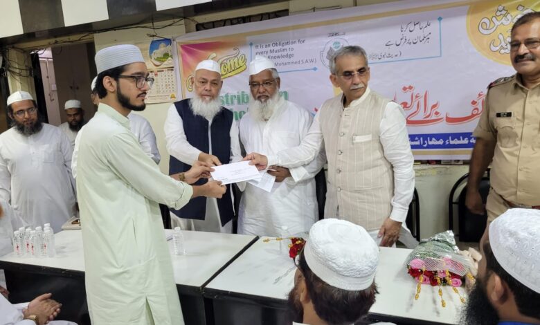 جمعیۃ علماء مہاراشٹر (ارشد مدنی) کے دفتر پر مستحق طلباء وطالبات میں تعلیمی وظائف کے چیک کی تقسیم